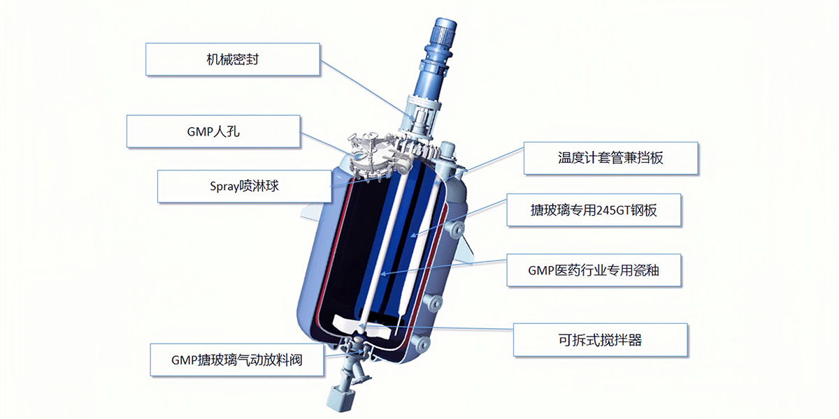 所有搪玻璃零部件:人口蓋板,底閥,攪拌全部在本廠制作,保證了整體質量